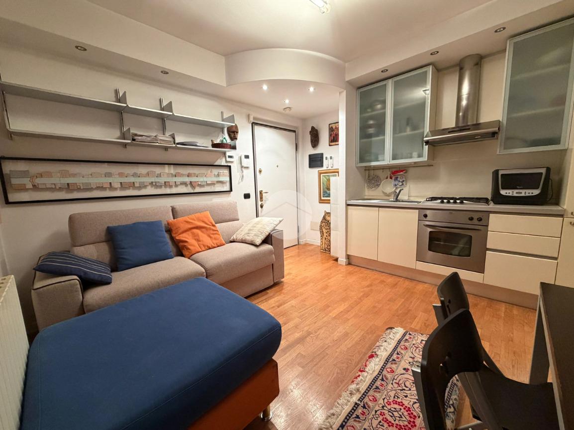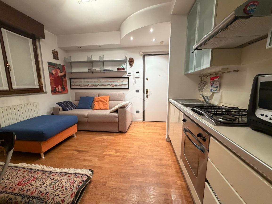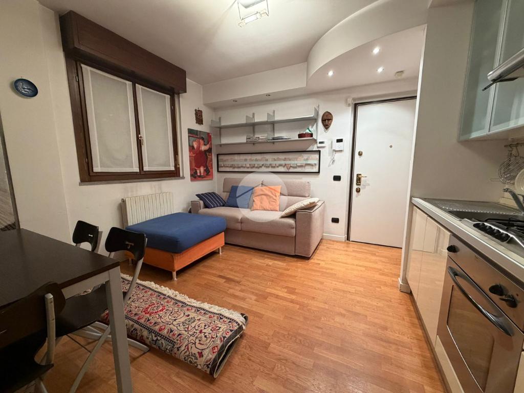 L’ingresso si apre su un soggiorno con cucina a vista, un ambiente funzionale e conviviale perfetto per la vita quotidiana. La zona notte è composta da una camera da letto con accesso diretto al balcone, che garantisce una piacevole luminosità e uno spazio esterno privato. Completa l’appartamento un bagno finestrato dotato di vasca.